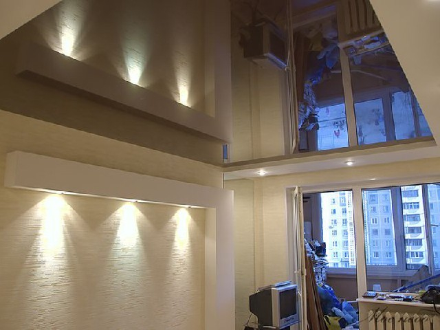 У подруги глянцевый фисташковый потолок, как-то не айс. Знаете как бывает, не плохо, но и не хорошо. У родственников, глянцевый черный! Вот это жесть, так жесть, плюс стены из декоративного кирпича, ощущение будто ты в модном подвале сидишь. Можно рискнуть и сделать креатив, но многие пишут и я с этим согласна, что лучше оторваться на шторах, люстре, коврике и т.д.