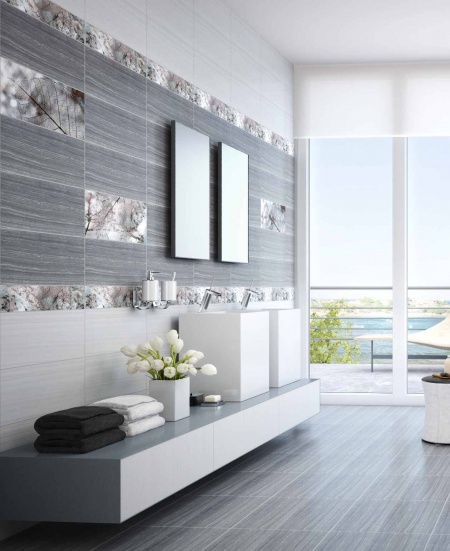 Интерьерное решение ванной комнатыДевочки!Покажите у кого такая плитка, пожалуйста!Выбирали что то серое или бежевое...выбирали между интеркерама "Магия"
