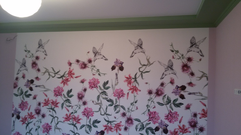 очень красивое сочетание обоев и балки. подскажите пожал-та у кого заказывали обои с птичками — безумно понравилось и во сколько вам обошлось? дочка просит розовую комнату. на чисто розовую не согласна, а такой вариант меня бы устроил