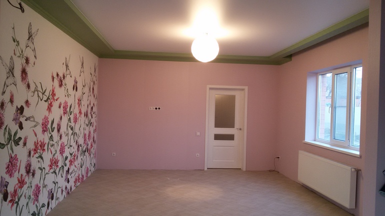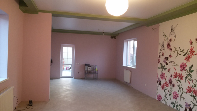 Спасибо большое,да,потолки высокие и в живую не выглядят так плоско как на фото,мы подумали,что на такой не маленькой площади просто белый потолок был бы скучноват,но и по поводу зелёного были сомнения,спросила здесь у девочек совет,единогласно было решено оставлять зеленый ))))