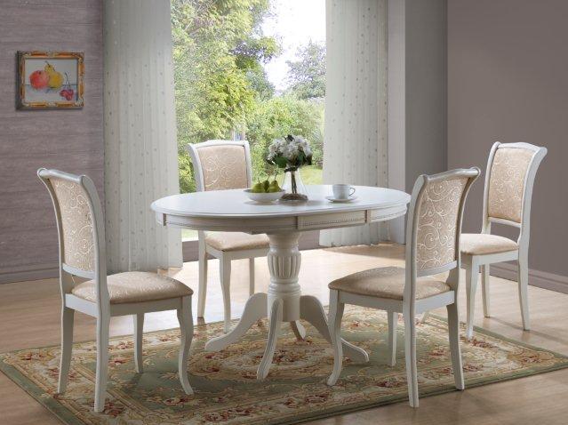 На мой взгляд мрачные обои для такой воздушной мебели. Комната светлая или темная?У меня был опыт поклейки темный обоев в светлую комнату — визуально комната уменьшилась почти в 2 раза, для такой шикарной обеденной группы лучше присмотреть что-то более воздушно-лёгкое ИМХО.
