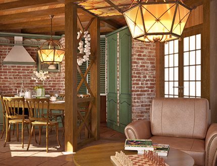 Интерьерное решение гостинойПроект Активный интерьер, визуализация студии для программы фазенда 14 декабря 2014 года, в силу разных обстоятельств финальный результат немного отличается от концепта но в целом проект удался. Другие ракурсы в большем разрешении и пару фото уже готового обьекта