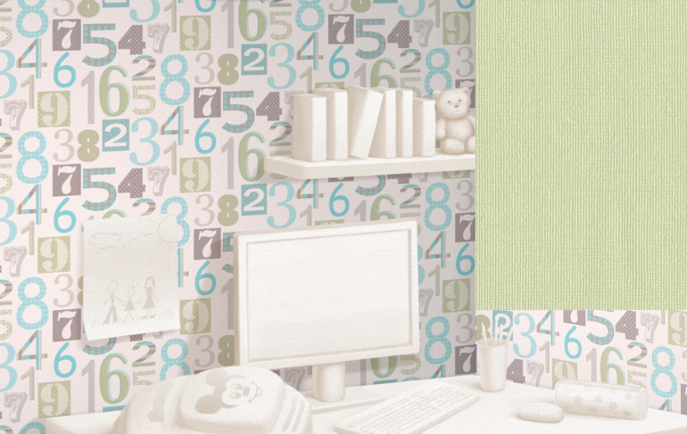 -Может покрасить стены разным цветом в разную зону, а на пустую стену в игровой фотообои (как показано на фото). Если так, то в какой цвет красить? какие фотообои?
