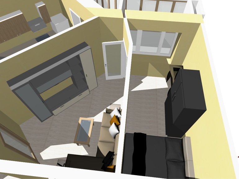 конкретно в этом варианте задача была разместить спальню и место для тв, таким образом, чтоб друг другу не мешали (т.е. один спит, другой смотрит). Это конечно не гостиная в чистом виде. Это только для семьи.