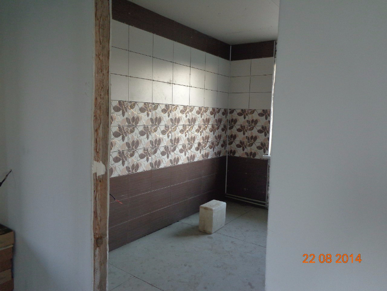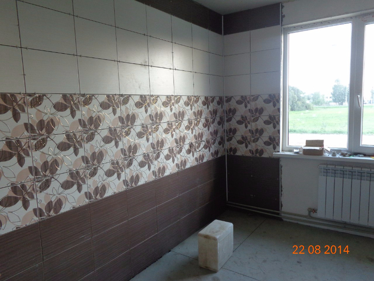 плитка красивая? только зачем вы ее так много налепили? можно ж было только рабочую стенку и все. кухню поставите и ничего этого видно уже и не будет (((