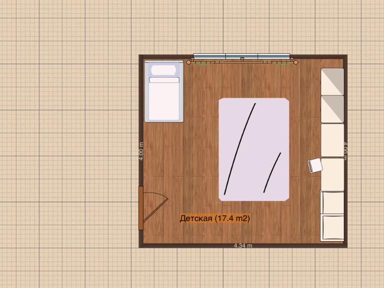 Интерьерное решение детской комнатыДоброго времени суток. Девочки, помогите пожалуйста советом с расстановкой мебели в детской. Я два варианта сделала, но что-то не один не нравится(((. Мебель Икеа будет. Стува бетсад белая, кровать миннен. Под катом план комнаты и мои мучения на тему расстановки.