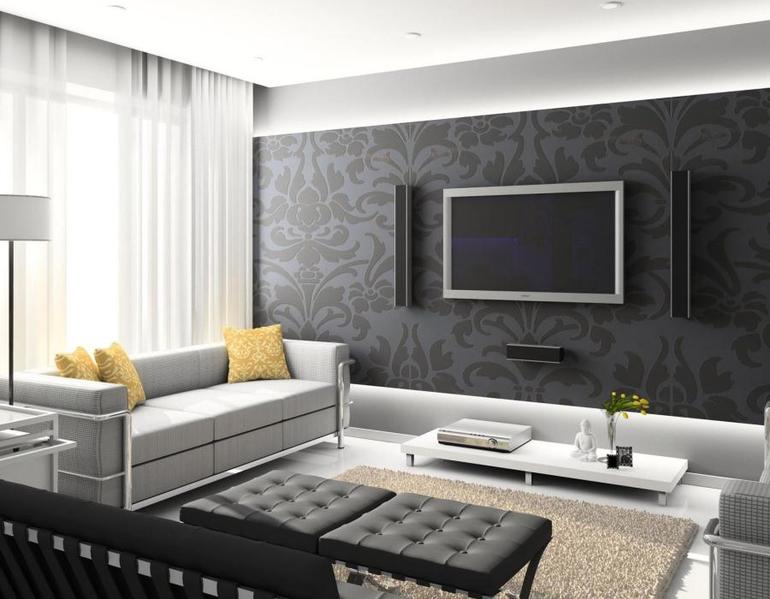 Черные обои на одну стену в гостиной. У кого-нибудь наклеены???