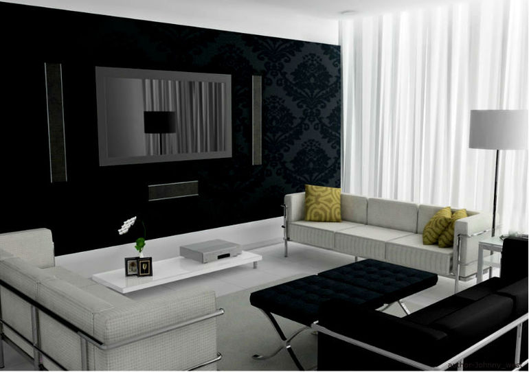 Интерьерное решение гостинойДевочки скоро будем покупать квартиру. Примерно знаю какая она будет, так как у нас в городе однотипные хрущевки. Так вот очень хочу на одну стену сделать черные обои.