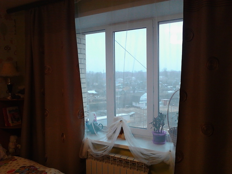На окно конечно очень темно фотографировать. Но белый тюль хорош.