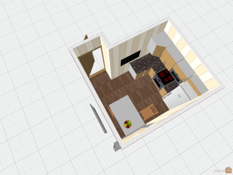 Не могу решить, как оформить угол кухни, получается прямо у входа