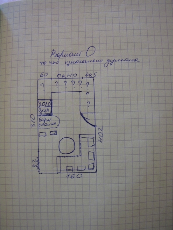 маленькая кухня только нет холодильника. куда его поставить. вот еще варианты планировки.