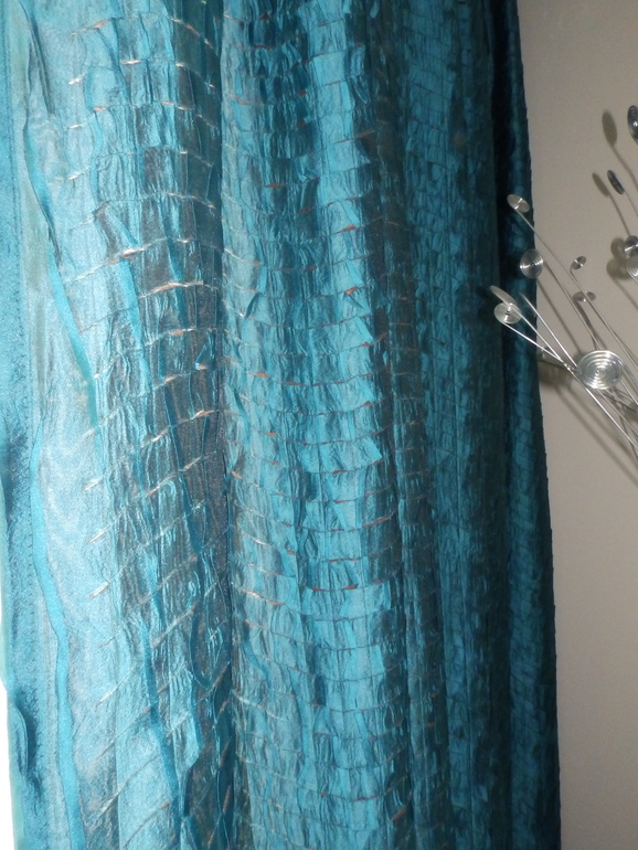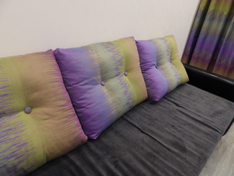 портьера на одну сторону, и чехлы на молнии из одной ткани. обтянули пуговицы.