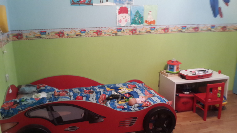 мебель в детской такая - (это маленькая комната.. обои тут переклеивать не будем..но вопрос с "овзрослением" ее - открыт.. бордюры с тракторами оборву и хочу туда что-то более соответсвующее спальне.. вот только что???