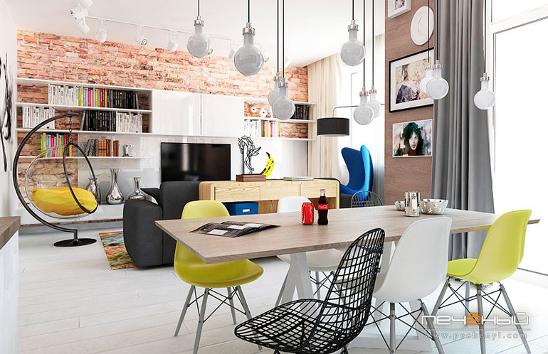 В светлый праздничный день посвящаю проект тем, кто любит лофт! :) Под катом - лофтовая кухня-гостиная и неожиданно милая маленькая комнатка для отдыха.
