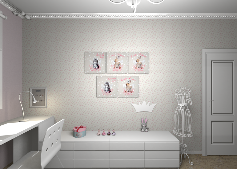было начала, но потом проекты один за другим..а счас тоже ремонт и хвостики подбиваю.боюсь, что моей категории клиентов цена не понравится..я спрашиваю про картинки, висящие на стене зайчик с короной?был