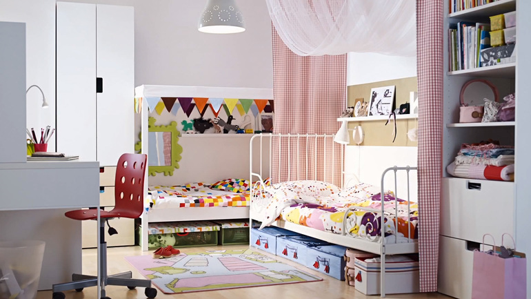 Идеальной детской будет являться комната квадратной формы и достаточной площади (в зависимости от количества детей, примерно по 6-8 квадратных метров на ребенка) с хорошим естественным . Однако помещение может быть и небольшим (даже 5-7 м2), но обязательно изолированным. То, что детям необходима отдельная комната, - абсолютно точно. В крайнем случае, если такое не представляется возможным, можно создать особое детское пространство внутри другой жилой комнаты с помощью гипсокартонных перегородок с нишами, подсветкой, полками и ящиками для хранения.