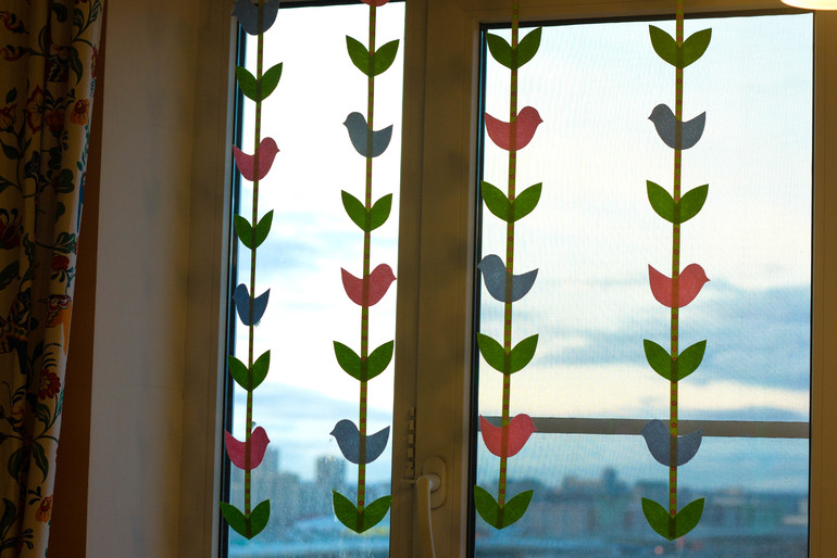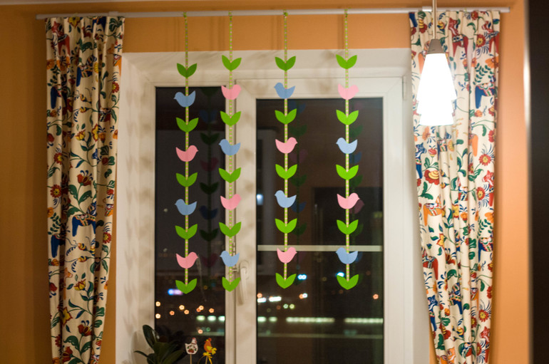 сшила другие занавески на лето, а они мне теперь зимними кажутся) снова повесила своих лошадок. Зима тут