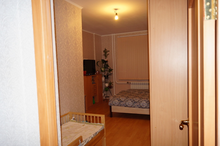 вид из коридора. Маленький пока с нами в комнате спит, позже отселим в детскую.