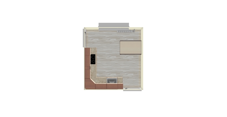 Вид сверху. Может стол так поставить? А холодильник куда?!??