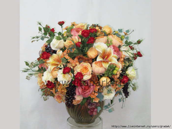 Позвонила сегодня. Оказалась, что вся эта красота стоит 18 000 (они ими обычно холлы престижных залов украшают). А когда подруга делает на заказ физическому лицу, может сделать большую скидку фактически по себестоимости с небольшой наценкой за работу. В целом такой же букет, если я сама попрошу ее заказать, обошелся бы мне в 9 000 рублей, то есть в два раза дешевле