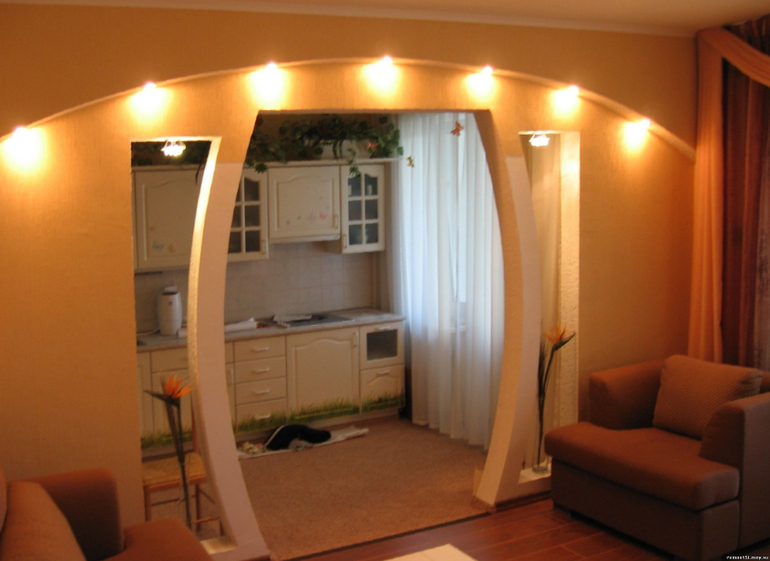У знакомых широкая арка. Очень красиво. Только с одной стороны выступ. Как окно балконное без рамы. На нем цветы.