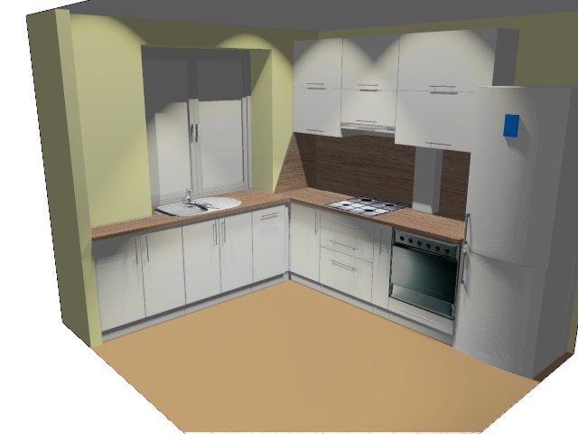 И может попробовать мойку и варочную поместить по одной стене, а подоконник сделать рабочей поверхностью