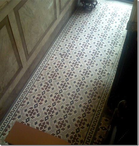 И еще вопрос: пол полностью выкладывать стоит этой рисунчатой плиткой, или все же зеленую выложить как бы по середине дорожкой, а по бокам белой???