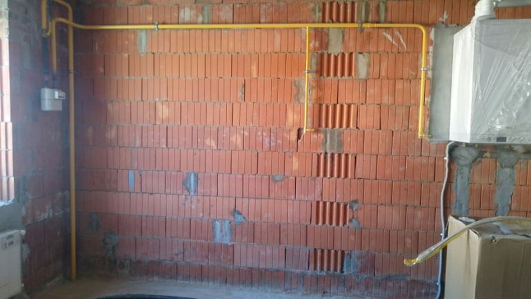 Я счетчик перенесла ближе к котлу. У окна встал холодильник и дальше обычная кухня. Счетчик в верхнем шкафчике, котел — в нише в углу, так и стоит открытый, не могу придумать как прикрыть его. Может шторкой, хотя странно будет.