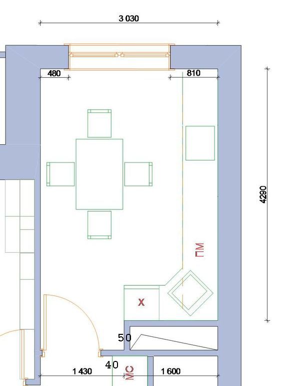 Вот я такой вот вариантик нарисовала, мне нравится, но нужно тянуть воду, да и близость к шторам (которые прячут счетчик), хозяйке не по душе.