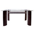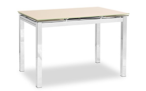 у нас стеклянный 107 см*80 см + по 21 см с каждой дополнительно выдвигается( "тяжко" в уходе, но не надо скатерти салфетки и т.п.)