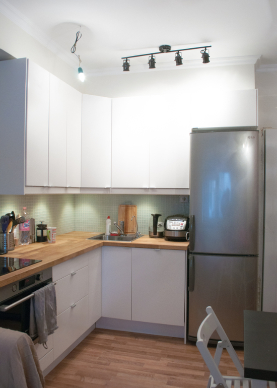 Интерьерное решение кухниСтыдно признать, но мы вот уже полгода не может доделать всякие мелочи в квартире, так и живем без плинтусов, наличников, потолка в ванной и прочих важных вещей) Поэтому я полностью и не показываю нашу квартиру...:(