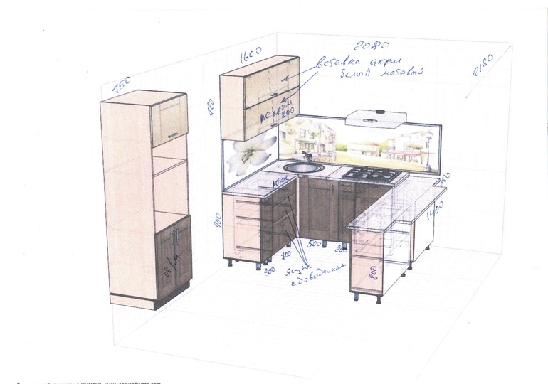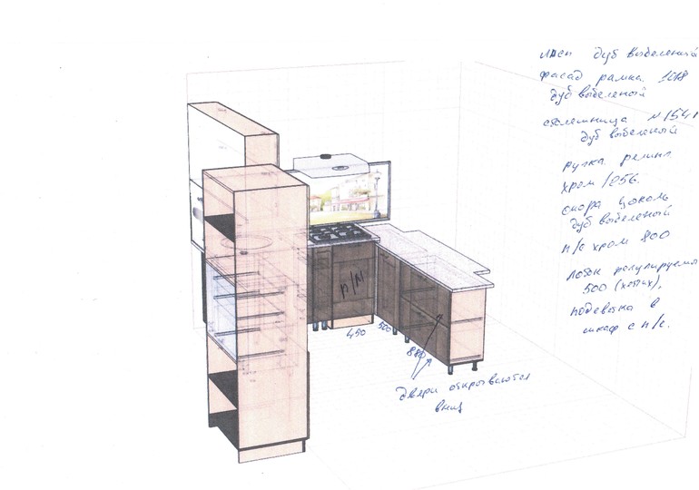 Интерьерное решение кухниДевочки, сделали мои мебельщики мне проект кухни. Цвет я выбрала беленый дуб, столешница в тон. Все матовое. План под катом