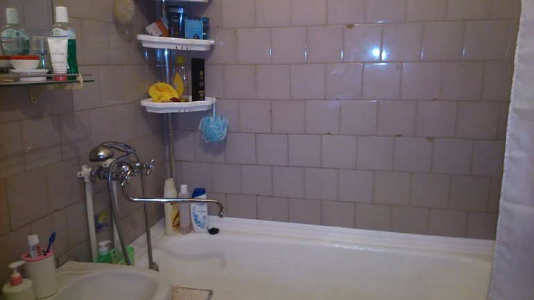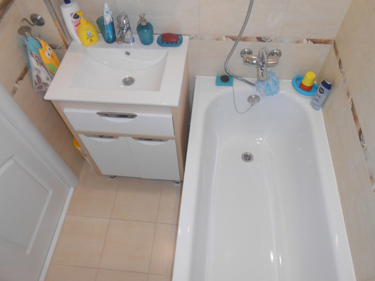 Кстати, ванная у нас стальная. На фото видно, что нам её запенили, поэтому особо как вода льется не слышно. В ванной я сама лежать не люблю, в основном душ принимаю, муж только иногда лежит. Но не жаловался на то, что вода остывает. А стальную нам опять же посоветовали ремонтиники. Сказали, что только её они смогут максимально близко поставить к стене. А до этого у нас была старая чугунная.