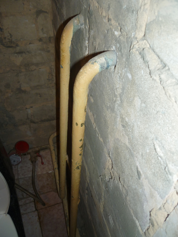 Эти дела предстоят в ванной. А в туалете вон что, разводку наверно точно надо менять???? хочу на эти трубы сразу оба счетчика повесить, чтоб в одном месте были (а то один в ванной, второй за унитазом....) и закрыть коробом: