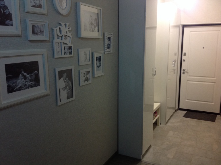 Рамочки — отпад! Моя мечта!А фото Вы специально чб оформляете и печатаете?А для сумок хранение какое прекрасное!!! Сохраню себе. Шкафы бы сдвинула друг к другу, банкетку перенесла впритык к входной двери. Сейчас по фото есть ощущение, что входишь в шкаф. =))) И натаптываете пространство от банкетки до входной двери, наверное.