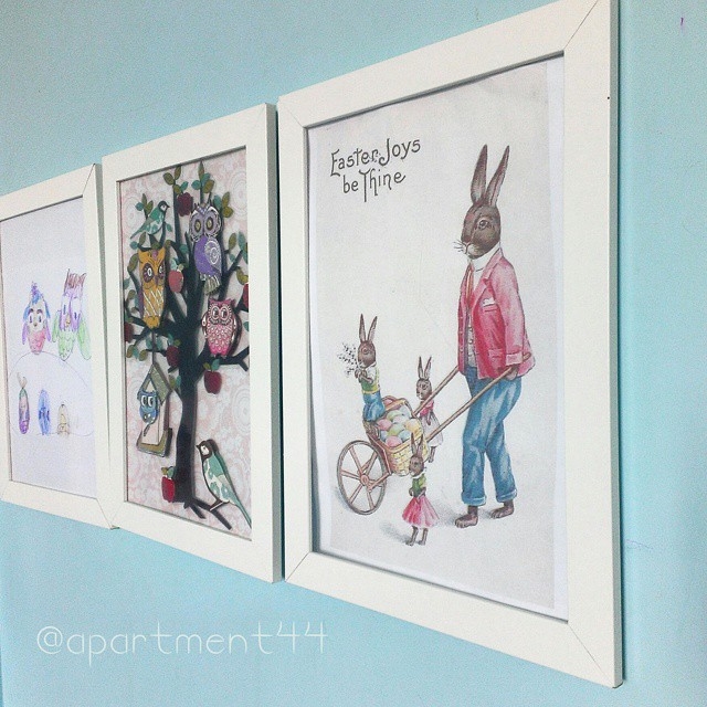 Простые и милые пасхальные картинки с зайцами. Нашли картинки в интернете, распечатали и вставили в рамки