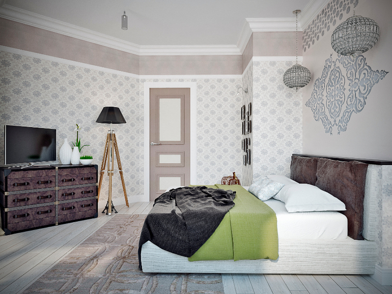 Вся квартира решена в едином стилевом направлении, которое можно смело назвать эклектикой. Выделяется лишь спальня старшей дочери, ее пожеланием было - очень темные стены и светлая мебель.