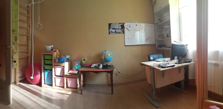 поэтому лесенка никак и не используется, неудобно руки разводить на кольцах. до переделки, спорт. инвентарь стоял на стене справа от входа, и кровать была сдвинута к окну, сын активно использовал его, но при переделке новые шкафы встали по стене идеально, я просто не представляю их в другом месте. либо лесенку вообще придется убрать