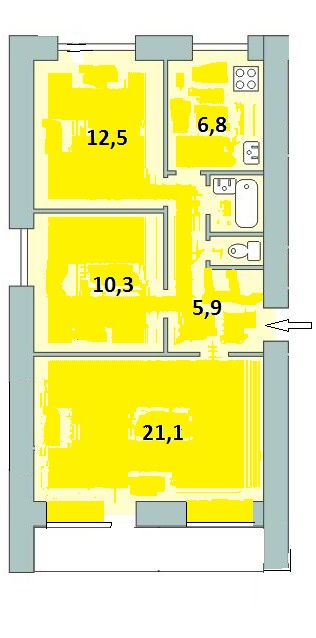 Соответственно, есть три жилые комнаты: