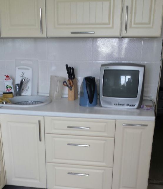 Кухня отличная! Светлая! Все прекрасно моется. Следов не остается. Столешница вообще белая — проблем нет.