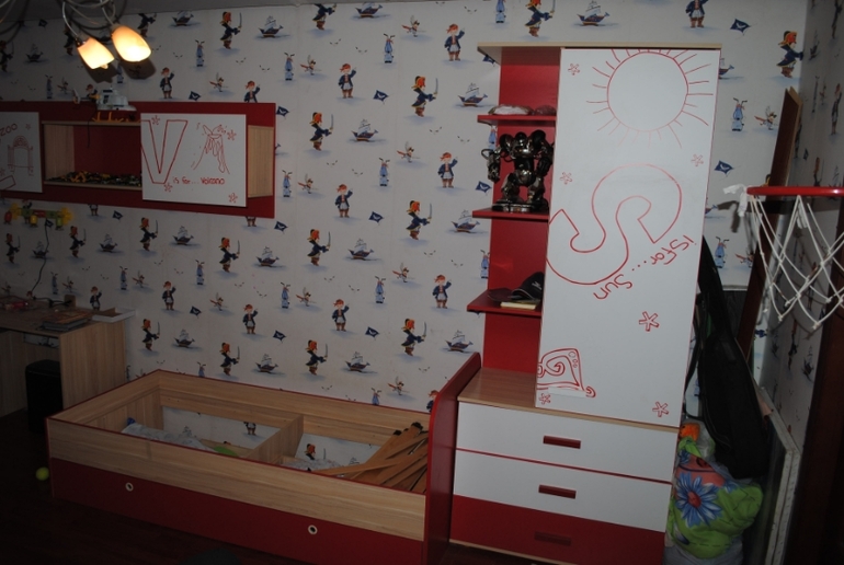 Интерьерное решение детской комнатыНе знаю как поставить МЕБЕЛЬ,и что хочу вместо кровати светлой диванчик небольшой к стене и напротив вместо комода телик .В игровой зоне нужно что-то думать, много ящиков не хочу.Да и в игрушки особенно ребенок не играет ,как ни странно. Далее по списку ковер по середине комнаты положу или возле диванчика.Ну фотки повешу его опять же над диваном. Только с игровой частью не знаю ,что делать думала спорткомплекс,но кажется уже поздно. Не интересно ему. Батут хочет ну это куплю складной . А так что делать не знаю. Комната большая 17 метров но не уютная. на бардак не смотрим, сына очень любит все свалить в кучу. Фото просто для общего понимания перспектив. Сыну 5,5 лет мебель новую покупать не хочу кроме дивана ну какого-нибудь столика или стелажика под телик.На столе будет ноут. ну и хочу подвесить на стену стаканчики для карандашей и ручек. Ребенок спит как на складе сейчас вот и думаю все убрать .комода не будет и кровати одной тоже.Матрас пока кочует с одной кровати на другую))Ребенку нравится. А мне уже нет.