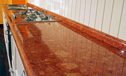Интерьерное решение кухниМраморный агломерат - искусственный камень, на 95% состоящий из мраморной крошки. Он лишен недостатков природного мрамора, при этом обладает собственными несомненными достоинствами. По своим техническим характеристикам агломерированный мрамор во многом превосходит натуральный, так, например, его истираемость - всего около 1 микрона в год.Внешне же различие мраморного агломерата и природного камня может определить лишь специалист.