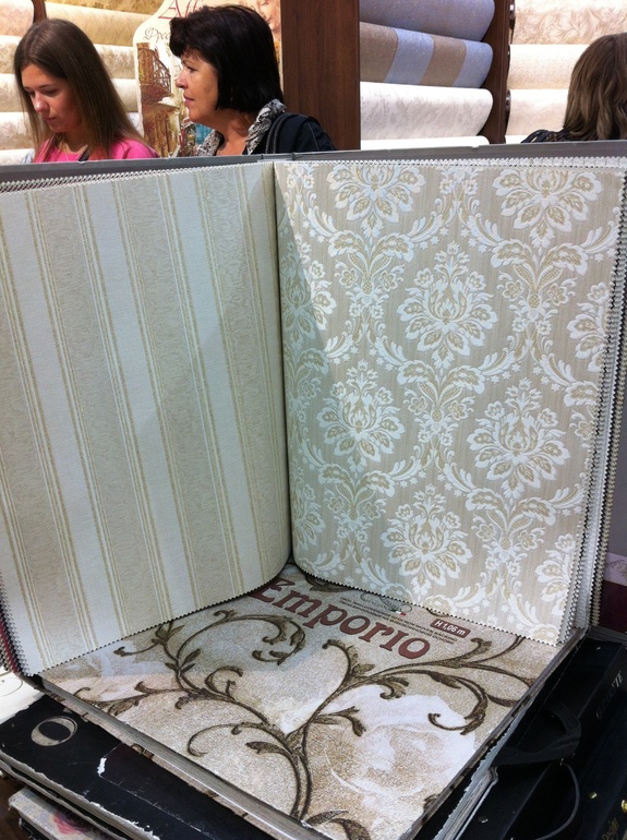 Интерьерное решение кухниХотим приобрести вот такую кухню и такие обои. Площадь комнаты 17 м2. Дамаск будет на одной стене, на трех других - полоски. Хочу узнать ваше мнение по поводу этих обоев. Не слишком ли аляписто будет смотреться дамаск? И еще, подскажите, какую плитку лучше выбрать на фартук? Мы пока остановились на белом глянцевом кабанчике.