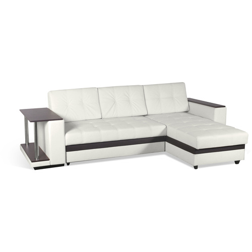 У нас такой, только не в коже. Часто меняю положение угла - просто переставляю, зазоров нет, спать удобно. Столик стоит со стороны угла, а маленькую боковинку мы вообще убрали - без нее можно садиться с торца дивана.