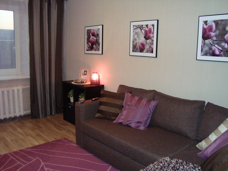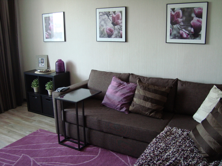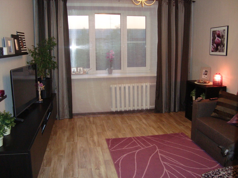 Интерьерное решение гостинойДевочки, здравствуйте. Публикую последний этап нашего ремонта. Представляю вашему вниманию единственную комнату наших апартаментов