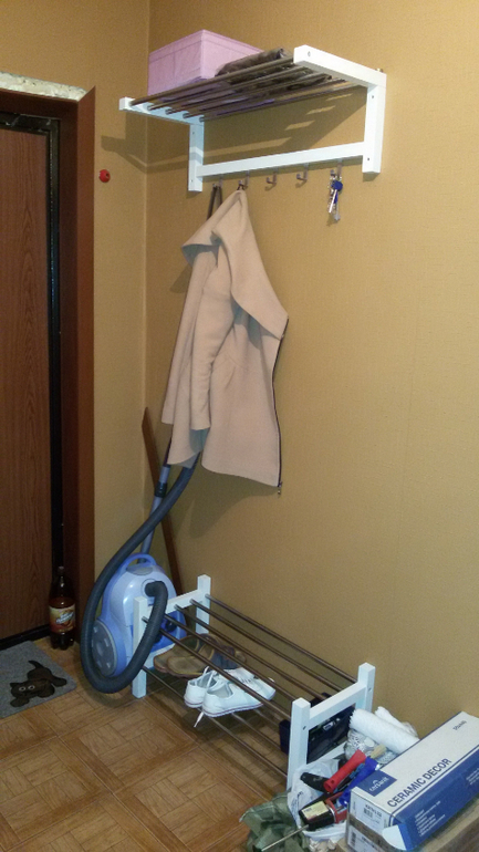 Осталось докупить зеркало в белой раме и повесить его правее вешалки. Ну и конечно закончить недоделки.