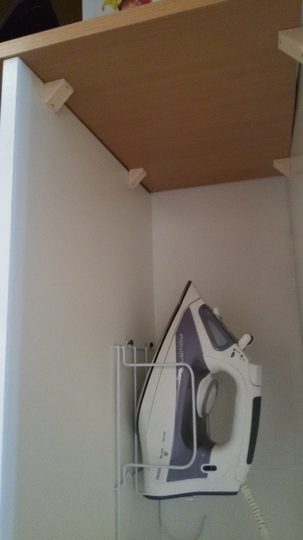 Крепление полочек. Белых досок ДСП не хватило в леруа, пришлось взять цвета бук.