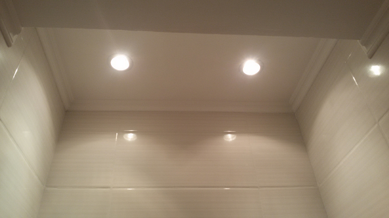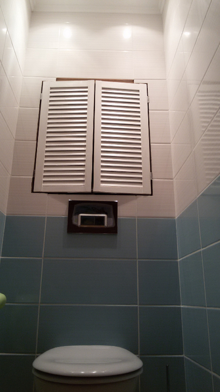 Потолок в туалете. венткороб проходит на половину потолка ((