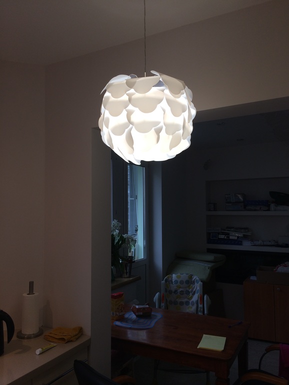 Да, на клей, клей вонючий очень и надо класть опытными людьми. Наш мастер первый раз это делал, косяков много, и по-хорошему её можно было бы только на кухне класть, а у нас получилось совместно кухня-гостиная и разные полы не вариант. На коробе углы наростили, чтобы было в один уровень с мебелью. И шкафчик внизу фрески удачный, вся техника поместилась. Блендер, мясорубка, миксер, а глубина всего 20 см.