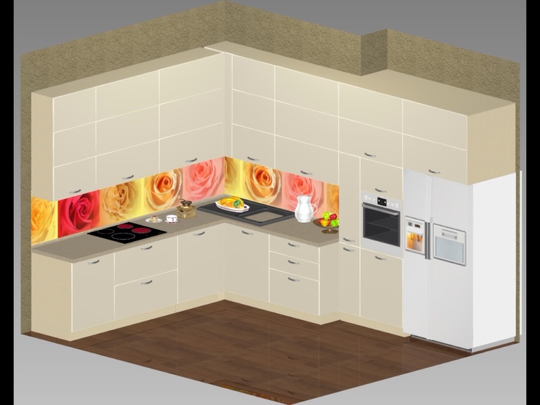 Интерьерное решение кухниДевочки, помогите советом по Планировке кухонных шкафов. Вот нарисовали в салоне кухонь. Все ли будет удобно?( Фартук будет другой)